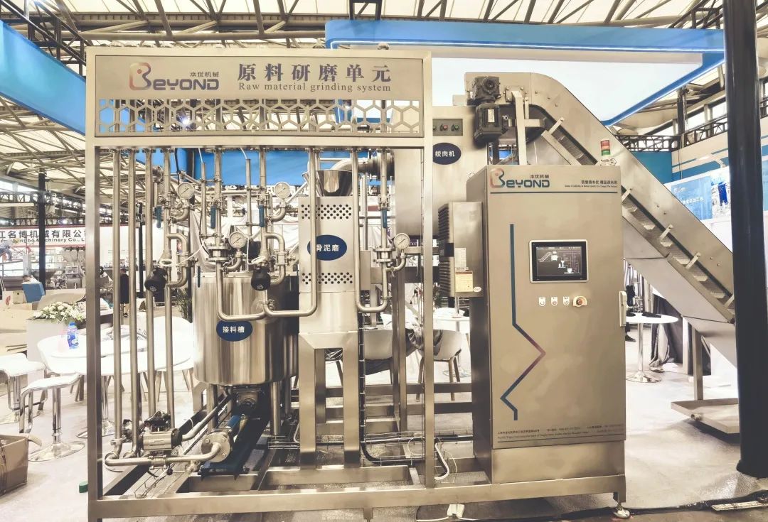 本優(yōu)原料研磨單元主要由凍肉絞肉機(jī)、骨泥磨、緩沖罐、螺桿泵等組成。主要適用于寵物風(fēng)味劑雞肝、牛肝等漿料制備、寵物主糧生產(chǎn)鮮肉的添加漿料制備。