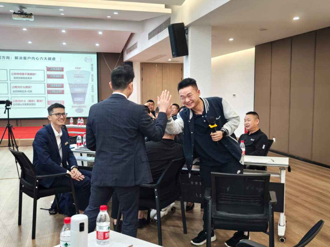 培訓(xùn)老師風(fēng)趣幽默的講了金牌銷售的成長體系,現(xiàn)場(chǎng)氣氛活躍,小伙伴們熱情高漲,紛紛認(rèn)真記錄拍照,根據(jù)培訓(xùn)內(nèi)容,進(jìn)行平時(shí)銷售流程中實(shí)際問題的討論。