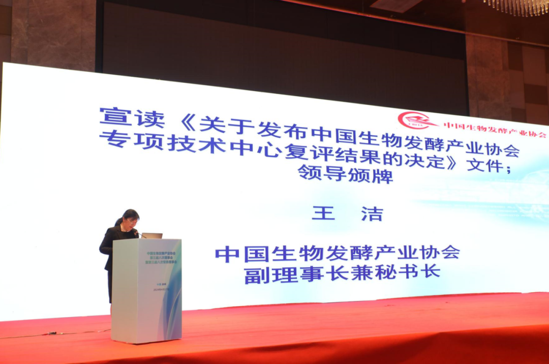 王潔秘書長就中國生物發(fā)酵產(chǎn)業(yè)《2023年經(jīng)濟(jì)運(yùn)行情況報(bào)告》等方面做了分享與交流,并宣讀頒獎(jiǎng)文件。