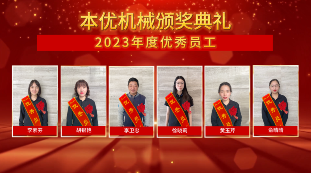 2024年5月16日,本優(yōu)機械2023經(jīng)營年度(2023.4.1-2024.3.31)優(yōu)秀員工表彰大會分別在上海本優(yōu)和江蘇本優(yōu)舉行。公司領(lǐng)導及全體員工參加了表彰頒獎典禮。