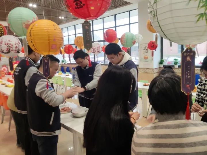 加水,和面、揉面、包餡,揉成型,一個(gè)個(gè)白白胖胖的元宵就出現(xiàn)在全體員工眼前。胖乎乎的大湯圓,吃了就元?dú)鉂M滿;小巧玲瓏的小湯圓,勝在可愛又喜慶。