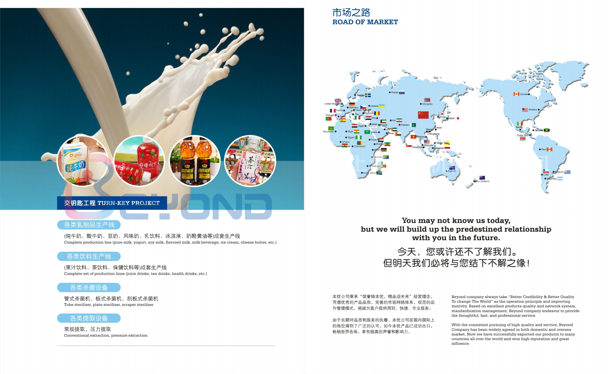 從事果蔬前處理、乳制品、飲料、果醬、純凈水、肉骨 加工、蛋品加工、寵物食品、特醫(yī)食品、酒類加工等以及生物 制藥、精細化工等生產(chǎn)線的設(shè)計、制造、安裝等交鑰匙工程。